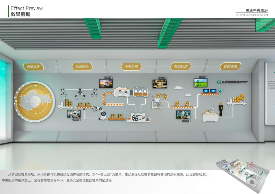龙亢农场禹雁食品中央厨房配送供应链项目由龙亢农场投资控股建设,项目依托龙亢农场规模化农业基地源头,着力构建从田间到餐桌的全产业链服务体系,致力于打造具有行业影响力的央厨与团餐供应链品牌。该项目总投资3.3亿元,其中一期投资1.2亿元,主要用于建设加工生产车间、仓库及配送中心,办公区及参观通道;同时建设初加工设备、热调理设备、主食设备、速冻设备及辅助设备等供应链央厨设备。