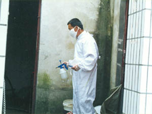 午收期间,东风湖农场“一手抓生产一手防非典”。确 保防疫、生产两不误。针对午收期间外出务工返回人 员,场要求医院坚持每天“一次消毒,一次测体温”。 +图为医务人员在为务工返回人员的居室进行消毒