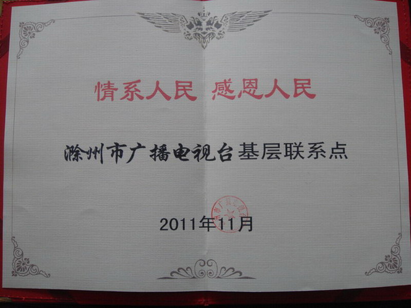11月30日,大圹圩农场倮倮米业公司收到滁州市广播电视台送来的“情系人民,感恩人民”基层联系点证书,文化与企业“结对子”,共同促进农产品质量和食品安全水平的提升。