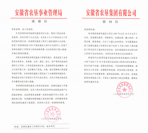 4月30日下午,集团公司副总经理刘超在移民迁建工地现场召开寿西湖农场移民迁建工程全面开工总结会,寿县县委副书记金德元和县工作组全体成员参加了会议。会上,刘超副总宣读了农垦集团公司给寿县县委、县政府的感谢信,对县委、县政府及有关部门组成的工作组全力以赴开展工作,先后解决了征地、文物、拆迁等影响工程进度的诸多问题表示衷心感谢;并宣读了给寿西湖农场的慰问信,对农场强化领导、明确责任、加强协调、精心组织、攻坚克难、昼夜奋战,4月30日如期完成全面开工任务表示祝贺和慰问。