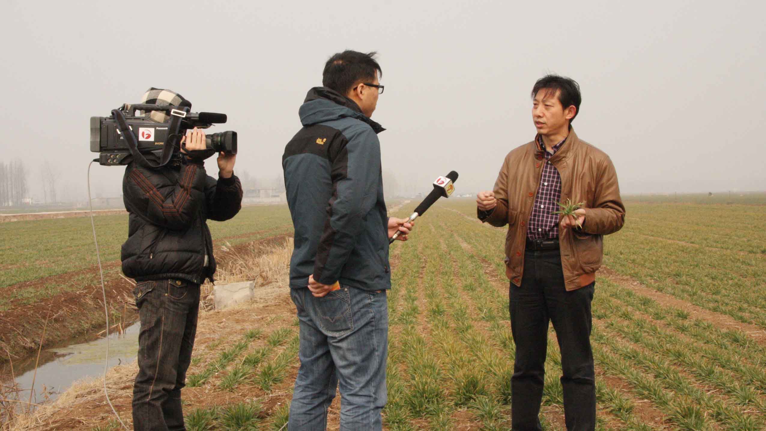 安徽电视台采访寿西湖农场小麦抗旱和田管工作