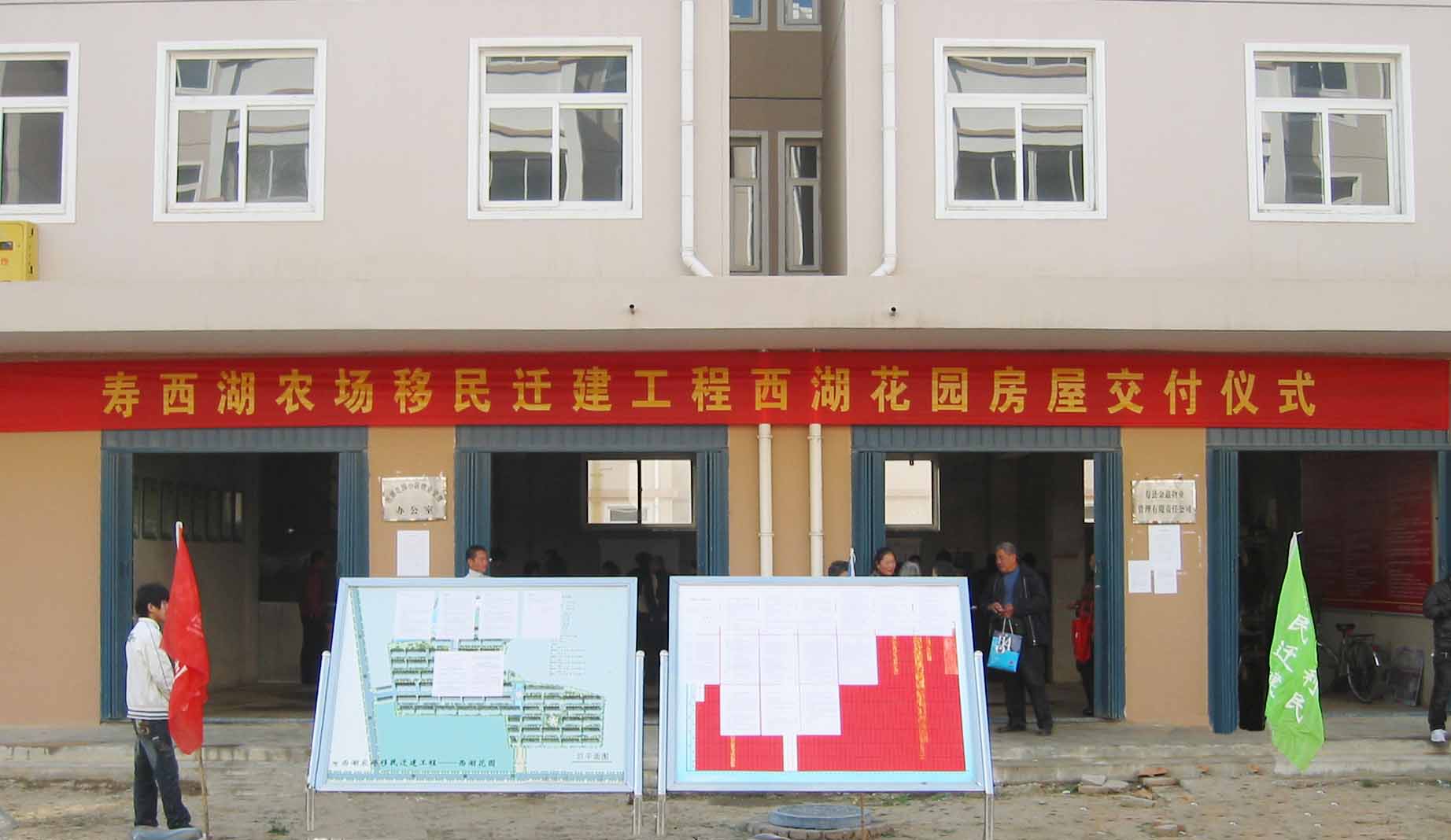 11月6日,寿西湖农场移民迁建工程——“西湖花园”首批534户住房在“西湖花园”物业办事处开始签约交付。
