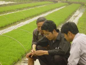 田头给小秧“会诊”。 (夏庆芳)