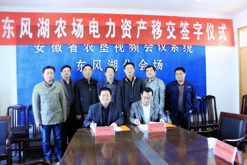 仪式上,大家一致认为,农垦企业电力资产移交地方供电系统,是落实国家惠农政策、减轻农场和职工负担、服务社会主义新农村建设的民生工程和德政工程,有着深远的历史意义和重要的现实意义。多年来凤台供电公司对东风湖农场经济建设作出了积极贡献,农场电力资产移交工作政策性强,操作难度大,双方必须胸怀全局,服从大局,加强领导,精心组织,加强协调沟通,及时互通信息,落实协议内容,抓紧工作推进,同时做好宣传、安全、廉洁自律等工作,把好事办好。农场场长涂玉龙和凤台供电公司党委书记王继平分别代表各方在协议书上签字,标志着东风湖农场电力资产在全垦区率先移交地方供电系统。